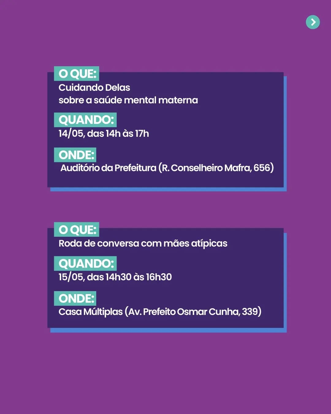 Neste mês de maio, Assessoria de Políticas Públicas para Mulheres e Igualdade de Gênero da Capital promoverá ações de conscientização sobre a saúde mental materna por meio da campanha nacional Maio Furta-Cor. A partir desta quinta-feira (9/5), as mães da Capital contarão com atividades voltadas ao suporte e acolhimento, por meio de rodas de conversa e entrega de materiais informativos.