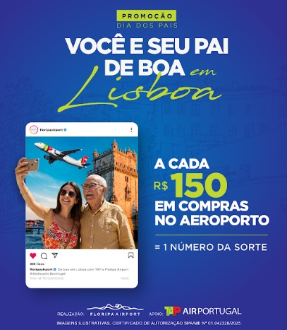 Em comemoração ao Dia dos Pais, o Floripa Airport lança a promoção “Você e seu pai de boa em Lisboa”. Ao escolher o presente do seu pai entre as inúmeras opções do mix de lojas ou ainda consumir nos cafés e restaurantes do aeroporto, o participante e um acompanhante podem ganhar uma viagem para Europa.