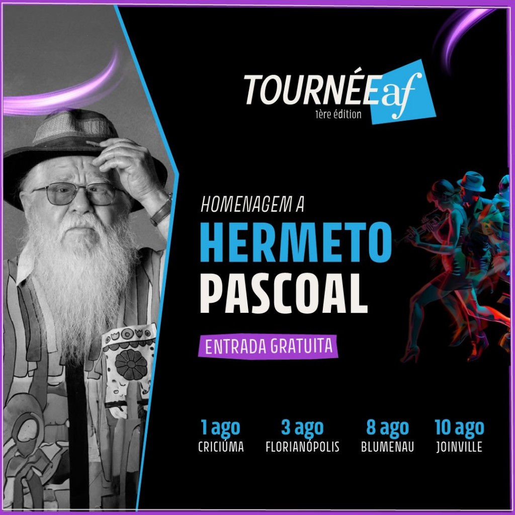 Para homenagear o lendário Hermeto Pascoal, músicos de Florianópolis escolheram as composições mais conhecidas do artista para um encontro especial em algumas cidades do estado. Reconhecido como o “bruxo” da música brasileira, Hermeto é celebrado por sua capacidade única de criar sons mágicos com instrumentos inusitados. O público poderá desfrutar de uma mistura única de jazz com ritmos regionais brasileiros.