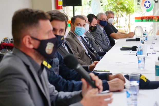 Participaram da coletiva desta quinta-feira, 9, em Criciúma, delegado Anselmo Cruz, da Delegacia de Roubos e Antissequestro; presidente do Colegiado Superior de Segurança Pública e Perícia Oficial de SC, delegado-geral Paulo Koerich; Clésio Salvaro, prefeito de Criciúma; tenente-coronel PM Cristian Dimitri Andrade, comandante do 9 Batalhão de Polícia Militar; diretor executivo da PRF, inspetor José Hott; comandante-geral da Polícia Militar, Dionei Tonet; coordenador do Grupo Regional do Gaeco, promotor de Justiça Ricardo Coelho Leal; perito chefe do IGP, Giovani Adriano e o superintendente de Polícia Federal em Santa Catarina, delegado Ricardo Cubas Cesar.
