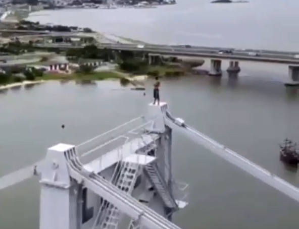 Atualização: Homem sobe no topo da Ponte Hercílio Luz