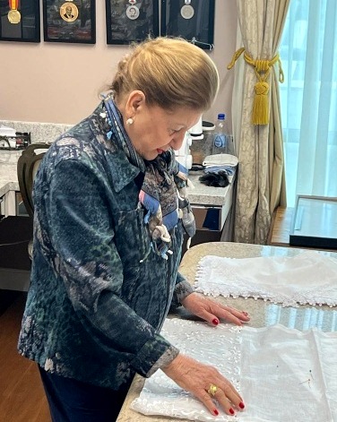 Todos os produtos que estarão à venda no bazar passam pelas mãos de Linda Koerich e nada passa ao seu olhar minucioso. “Eu tenho um pequeno ateliê, e ali eu comecei a costurar, a bordar… A noite eu fico na frente da televisão, aplicando, fazendo meus trabalhos manuais, alimentando a minha alma. Isso é bastante importante. Mas não faço nada sozinha. Conto com uma rede de apoio, mas é gratificante, eu faço esse trabalho na minha casa, no meu tempo, na minha hora. Este ano comecei a preparar as peças logo depois do carnaval. E, antes de levarmos para o bazar, reviso uma a uma, vejo se estão bem passadas, se o acabamento está perfeito, caso contrário, desmancho e refaço”, justifica.