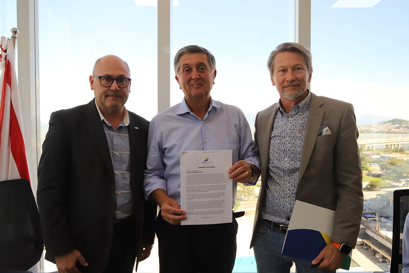 Na tarde desta quinta-feira, 11, o Movimento Floripa Sustentável, constituído por 45 entidades representativas da comunidade catarinense, foi até o gabinete e entregou ao prefeito da Capital, Topázio Neto, o manifesto “Um basta à intervenção federal”, que tem por objetivo protestar contra as recentes intervenções de órgãos federais em obras da cidade, prestar solidariedade e oferecer apoio técnico e jurídico ao Município.