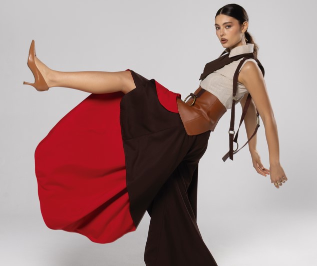 Entre as coleções apresentadas, “Recoluta”, da formanda Giulia Amarante, reforça o protagonismo feminino ao exaltar mulheres que vivem com autonomia e transformam o mundo à sua volta. Inspirada na cantora argentina Mercedes Sosa, Giulia propõe uma reflexão sobre a força das mulheres do Sul da América Latina e o vestir como uma postura de mundo.