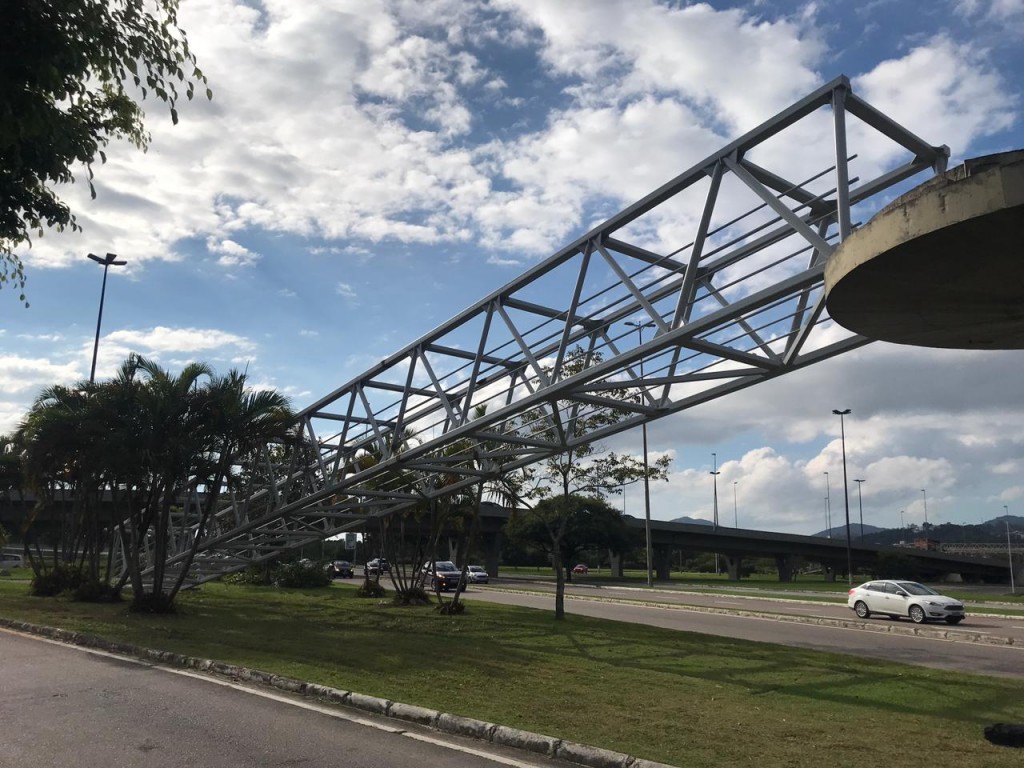 Neste terceiro içamento, relativo à reinstalação da passarela, será colocada no lugar a travessia menor - sobre a marginal da Avenida Irineu Bornhausen - do lado direito da via, sentido Centro-Trindade.