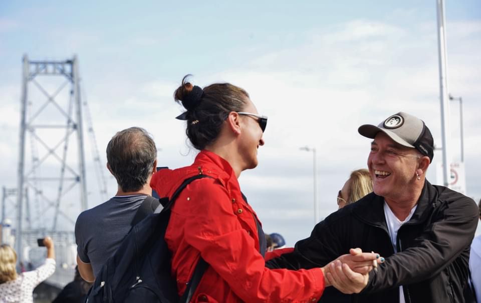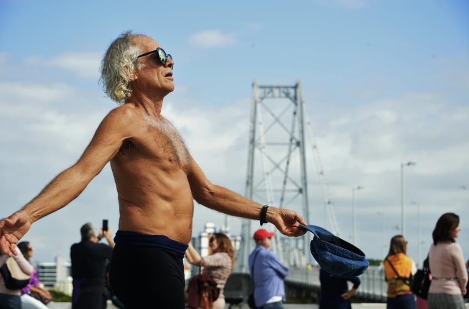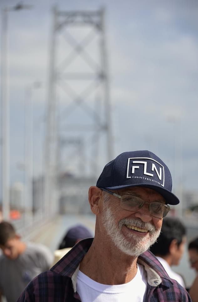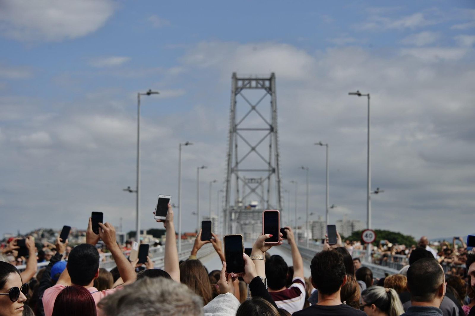 Olhares, os mais diversos, todos encantados. D. Laudelina Calazans, é de Florianópolis e tem a idade da ponte.