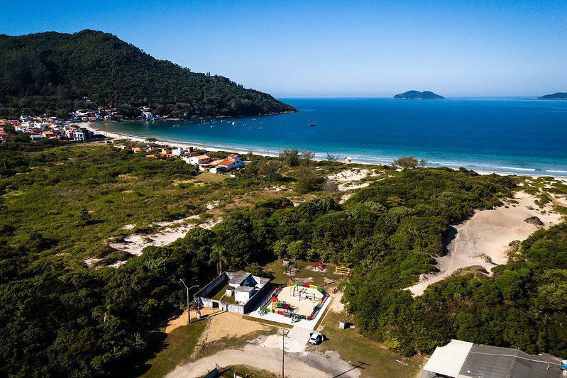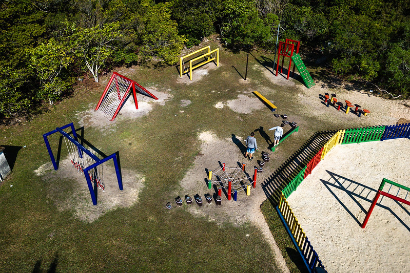 Um novo conceito de área de lazer está sendo testado em Florianópolis. No campo do Pântano do Sul, entre os bairros Pântano do Sul e Açores, a Prefeitura instalou um circuito de brinquedos criativos que desafiam o corpo e a imaginação das crianças. A proposta é oferecer experiências de maior aventura e liberdade, com materiais simples como madeira, cordas e metal, promovendo desenvolvimento físico, cognitivo e social.