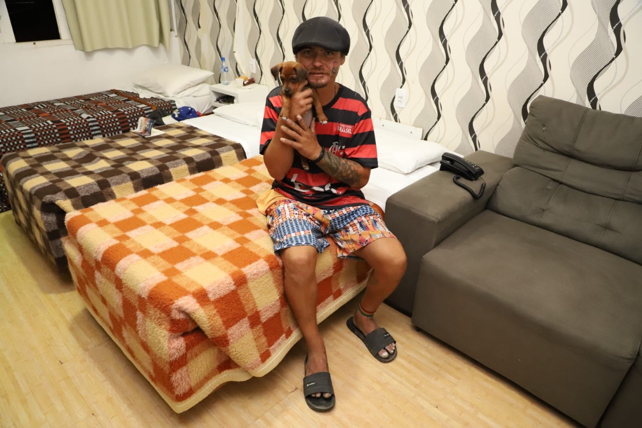 Felipe Rogério, de 37 anos, aceitou o acolhimento oferecido pela administração municipal. Ele e sua cachorrinha Keila foram sensibilizados na orla da praia de Canasvieiras. Os dois foram acolhidos em um hotel pago pela Prefeitura da Capital, no Centro da Cidade. Ambos foram levados pela equipe técnica e tiveram todo acolhimento necessário. O homem estava muito feliz por ser acolhido com sua cachorrinha e não escondia seu contentamento. 'Ela é muito importante pra mim. Estou muito feliz de poder ir comigo porque ela é uma verdadeira amiga, uma companheira. Tenho responsabilidade por ela, se não, nem a teria adotado', comenta Felipe.