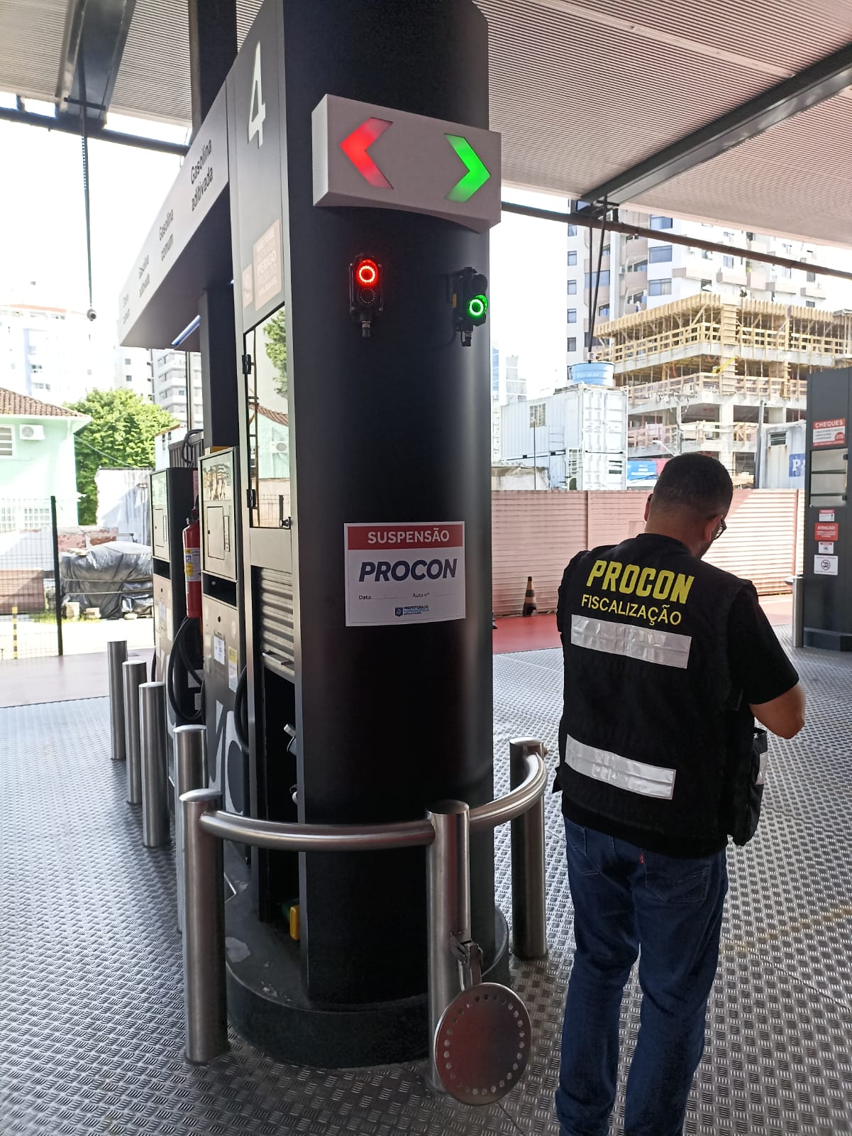 O Procon de Florianópolis realizou nesta quinta-feira (2) a suspensão dos serviços de um posto de combustível por aumento injustificado do preço nas bombas de gasolina, que continham produto já existente no estoque.