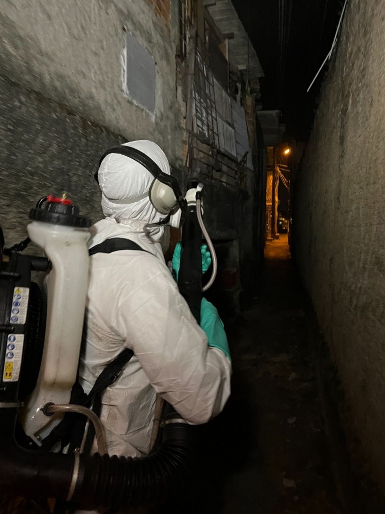 A aplicação de inseticida contra o mosquito Aedes Aegypti começou às 5 horas da manhã.