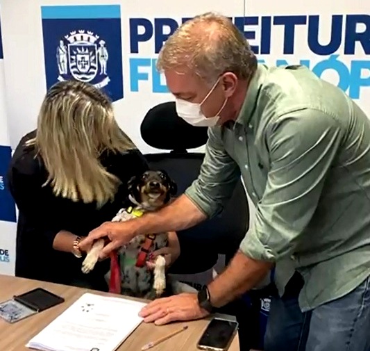 Na manhã desta quarta-feira, 10, foi assinado em Florianópolis um Projeto de Lei que visa tratamento gratuito para cães de pessoas de baixa renda diagnosticados com leishmaniose. Many "assinou" o Projeto com sua patinha e ficou famosa nas redes sociais. A cachorrinha faz tratamento para a zoonose e segue feliz e sorridente como apareceu em todas as fotos tiradas.
