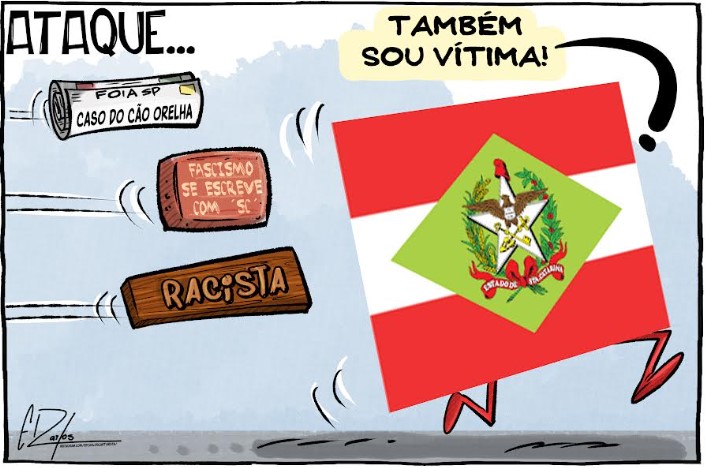 Continuam os ataques aos catarinenses na mídia nacional. Marco Antônio M. de Oliveira teve mensagem publicada na “Folha de S. Paulo” de ontem, comentando que “já começaram os preparativos para engavetar o caso do cão Orelha”. Depois de outras considerações finaliza: “Aliás, não custa lembrar, fascismo se escreve com ´sc´ de Santa Catarina”.