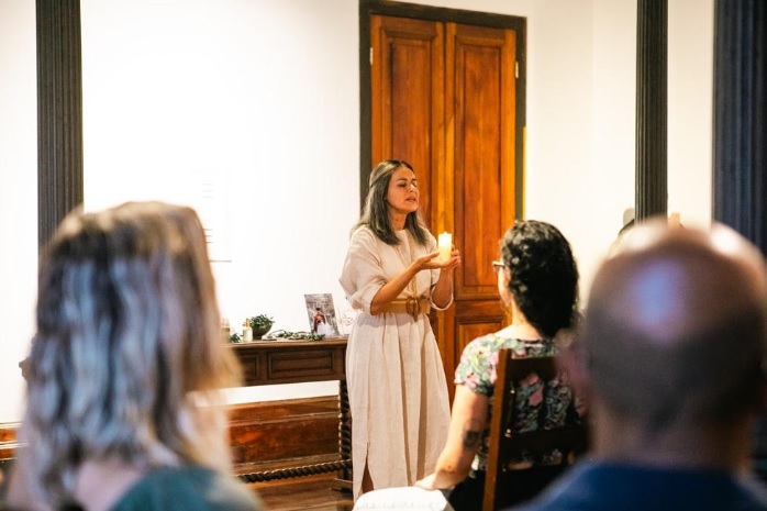 Durante cerca de 60 minutos, o público vivencia um ritual de limpeza energética com o uso de ervas, cânticos e partilhas emocionais, promovendo acolhimento, conexão e elevação da energia coletiva. O ritual ainda ensina os participantes a praticarem a arte de benzer, fortalecendo o vínculo com essa herança cultural tão presente nas comunidades brasileiras.