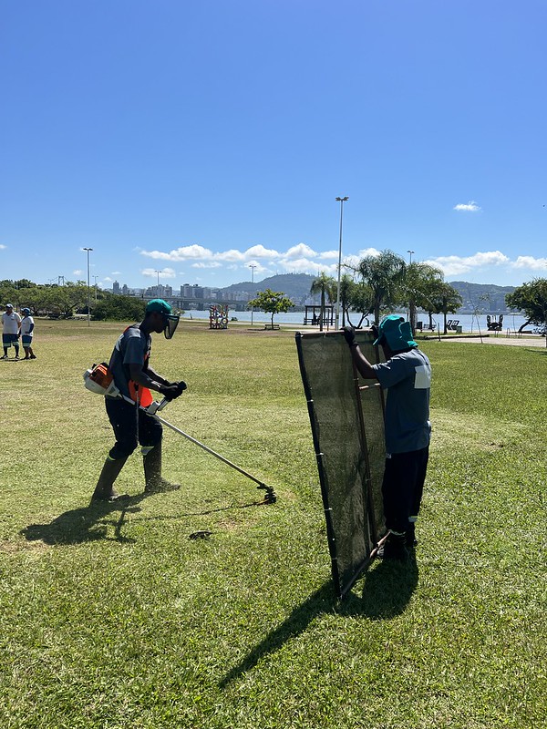 Dez reeducandos da Penitenciária de Florianópolis atuam na limpeza dos cemitérios municipais desde metade de dezembro. Agora em janeiro, foram formadas duas equipes para atuação em limpeza viária. Onze passarão a trabalhar na roçagem das marginais da Via Expressa Sul e 10 na roçagem da Avenida Beira-mar Norte, no trecho compreendido entre o elevado do CIC e o binário do Pantanal.