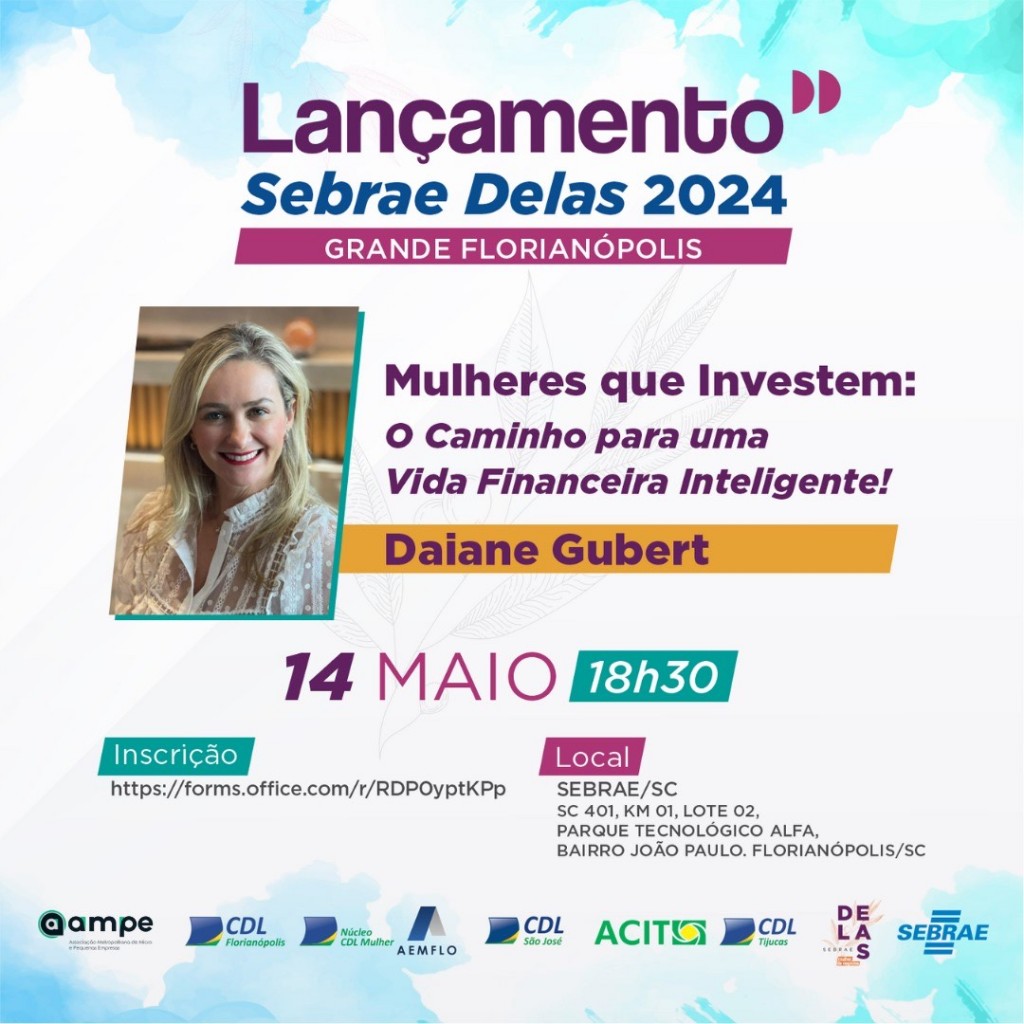 O Sebrae/SC promove o lançamento do Programa Sebrae Delas na regional da Grande Florianópolis. O evento será realizado nesta terça-feira, 14 de maio, às 18h30, na sede do SEBRAE/SC, em Florianópolis. As inscrições são gratuitas, mediante doação de item de higiene para a campanha de apoio às vítimas no Rio Grande do Sul, e podem ser realizadas no link.