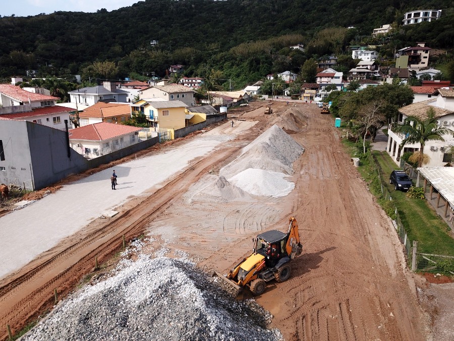 Iniciou uma etapa importante das obras do futuro binário da Lagoa da Conceição, em Florianópolis: a pavimentação da nova via em implantação paralela à Avenida das Rendeiras.