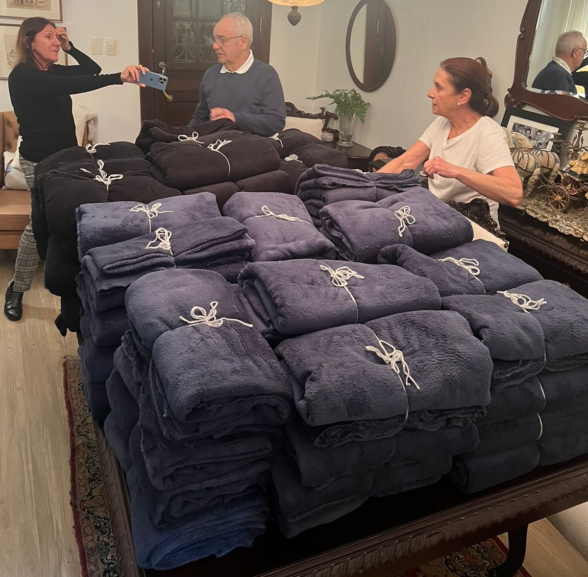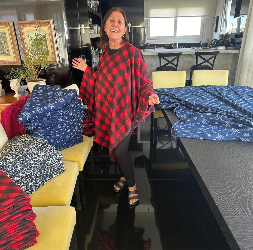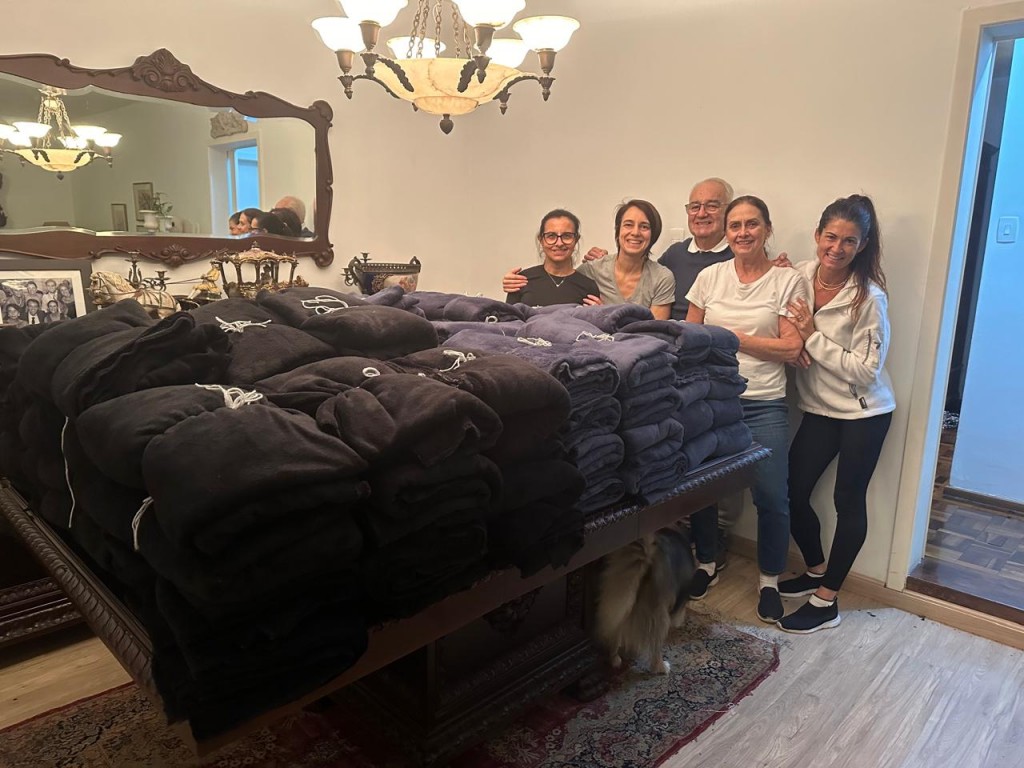 Essa família de empresários, que não teve sua empresa afetada pelas chuvas, se uniu em prol dos necessitados, a filha mais velha assumiu a liderança e mobilizou amigos e conhecidos para organizar ajuda. Os pais, donos de uma empresa de inovação, também entraram nessa causa ao comprar tecidos com recursos próprios para confeccionar cobertores e ponchos para os desabrigados diante da chegada do frio.