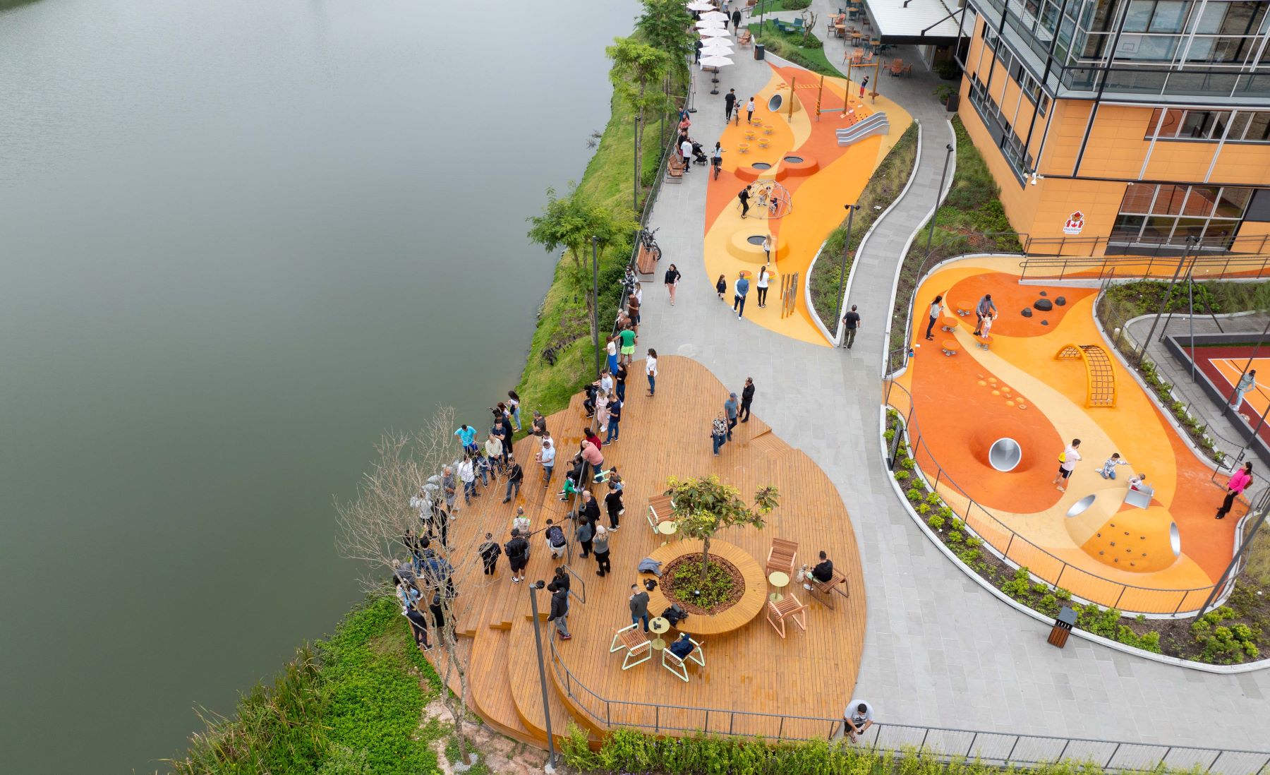 O ato também contou com a presença de famílias que aproveitavam o recém inaugurado Passeio Sapiens, uma ampla área de lazer e entretenimento para adultos, crianças e pets. As tainhas foram soltas no lago artificial para marcar o início da etapa de estudos que serão feitos no local. Será realizada uma pesquisa focada na criação de tainhas e robalos em ambientes naturais controlados. Este estudo tem como objetivo principal avaliar a viabilidade da criação de peixes marinhos em ambientes controlados e de baixa salinidade, bem como entender melhor os aspectos biológicos e comportamentais desta espécie em tais condições.