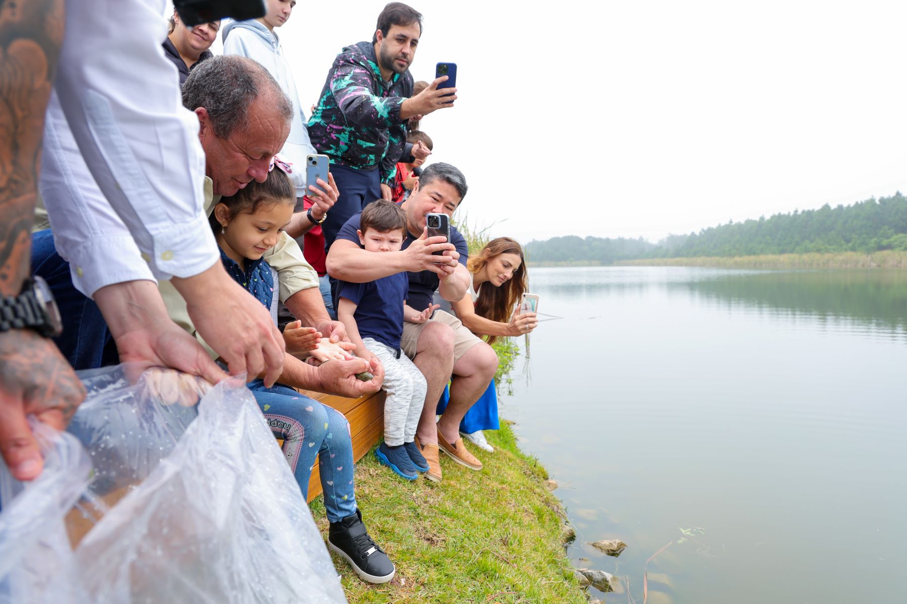 Os peixes foram soltos na lagoa por representantes do Governo do Estado, da Prefeitura de Florianópolis, UFSC, do Sapiens Parque, junto com as crianças que acompanhavam o evento.