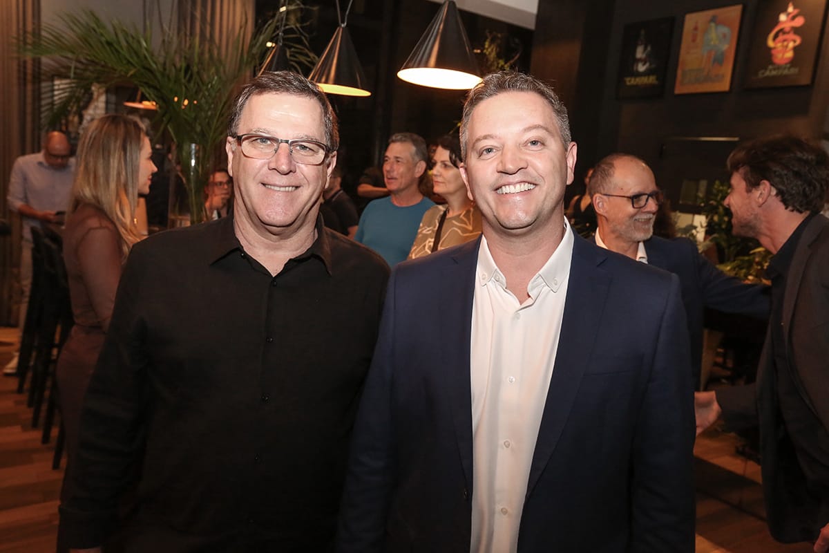 Marcos Alcauza e Eduardo Miranda em evento do mercado imobiliário realizado quarta (22) no Jazzinn, no Beiramar Shopping. (Foto: Darline e Angelo Fotógrafos)