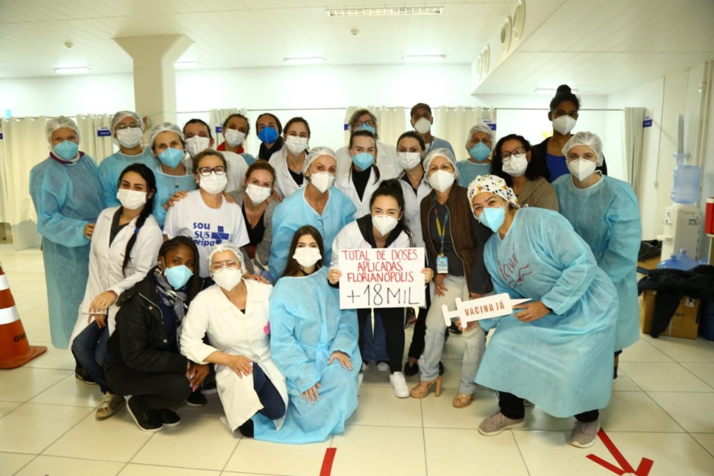 Com mais de mil profissionais entre vacinadores, motoristas, voluntário, apoios para logística, administradores e muito mais, a Prefeitura de Florianópolis, por meio da Secretaria de Saúde, aplicou 18.583 doses de vacinas contra o novo coronavírus.