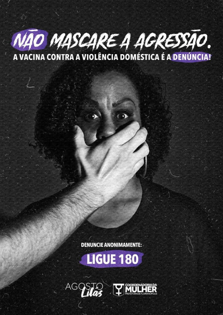 Nesta segunda-feira, 02 de agosto, a Prefeitura de Florianópolis, por meio da Coordenadoria Municipal de Políticas Públicas para a Mulher e Fundação Somar, lança a campanha “Agosto Lilás”, com a temática “Não Mascare a Agressão - a vacina contra a violência doméstica é a denúncia”. A campanha utiliza o mês de agosto, que marca os 15 anos da Lei Maria da Penha, para incentivar a denúncia em casos de violência doméstica.
