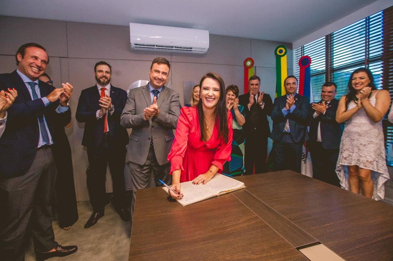 Para iniciar o mandato, o (a) presidente da OAB/SC assina um termo de posse de forma administrativa no primeiro dia do ano. A posse festiva de Cláudia, evento público e voltado a advocacia e autoridades, foi no dia 18 de fevereiro (Foto: Divulgação)