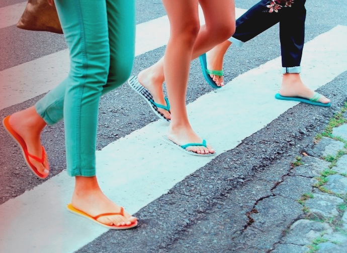 - Reserve os chinelos para a piscina, a praia e caminhadas curtas em superfícies planas, como tomar um sorvete no calçadão da praia;