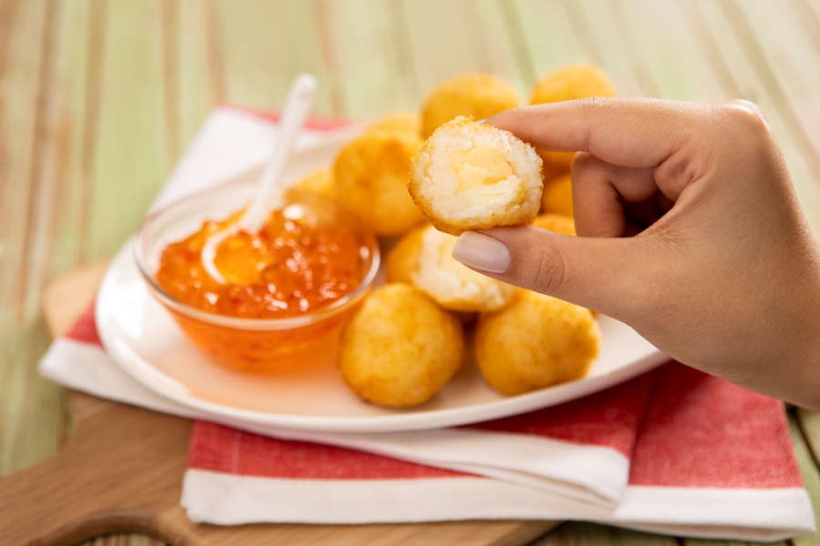 Arancini de Queijo Coalho Tirolez e geleia de pimenta