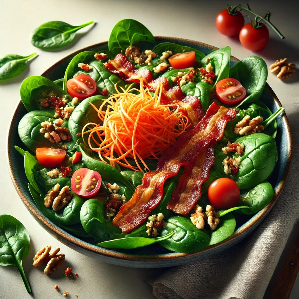 Salada de Espinafre com Bacon Crocante e Vinagrete de Limão