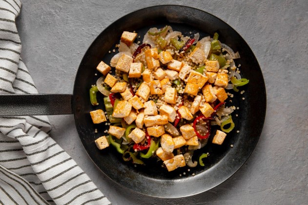 Preparação rápida aposta em tofu, vegetais salteados e sabores equilibrados