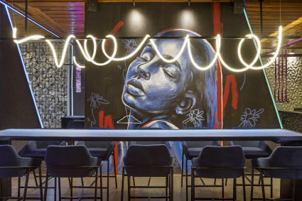 O Bar Enjoy The Ride, projetado pelo arquiteto estreante Tiago Bortolança, vem com a proposta de retomada dos encontros coletivos, depois de um período de isolamento em que esse tipo de evento era proibido. Com destaque para a cor roxa, que traz a sensação de ousadia e sensualidade típica das casas noturnas, o ambiente descolado e extrovertido é o local perfeito para se sentar, conversar e beber. Entre as opções do cardápio, com operação da Cervejaria Faixa Preta, há cervejas pilsen, imperial rye IPA e weiss (350 ml) por preços entre R$ 15 e R$ 20, e garrafa de 1 litro de pilsen por R$ 35.