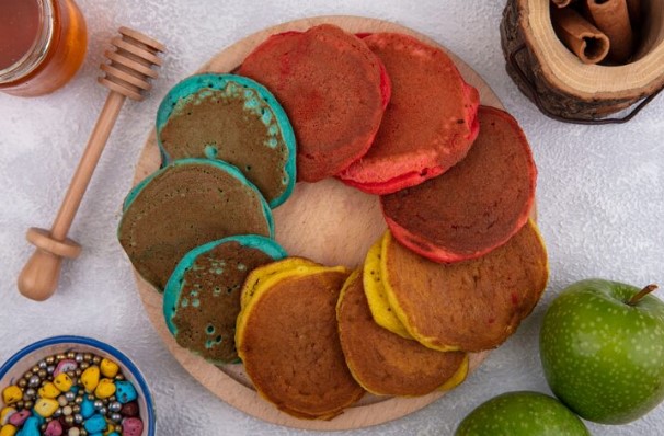 Que tal transformar o lanche da tarde em uma experiência divertida e colorida? A panqueca mini colorida chega para encantar adultos e crianças com suas camadas vibrantes e cobertura cheia de frutas e confeitos. Fácil de preparar, essa receita permite soltar a criatividade na hora de montar, combinando cores e sabores de forma divertida e deliciosa. Ideal para um café da tarde especial ou para surpreender em festas e encontros, cada mordida é um pedacinho de arco-íris no prato.