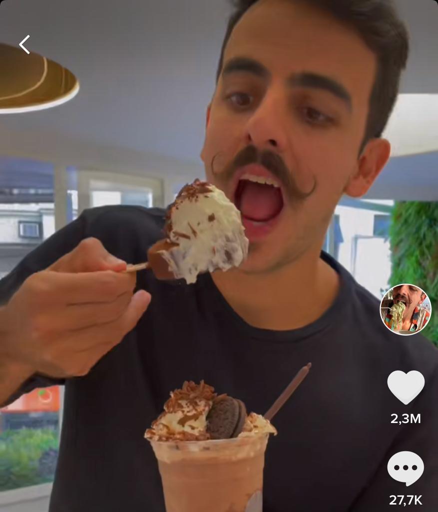 Bernardo Soares, o Mustache, tem 27 anos, é natural de Florianópolis, mas já morou em Nova York por 2 anos. Foi lá que começou sua carreira digital. Atualmante, ele tem 1,5 milhões de seguidores no Tik Tok, plataforma onde ficam gravados os Reviews.