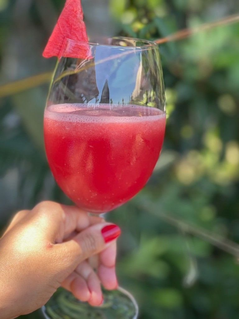 Outra dica é o espetinho caprese, feito com tomatinho cereja, queijo branco (pode ser o de cabra) e manjericão. O tomate é um fruto composto em sua maioria por água (100 gramas de tomate têm 94% de água e só 20 calorias). Adicione ao seu kit hidratação, água de coco, água mineral, chás gelados, frutas e sucos.