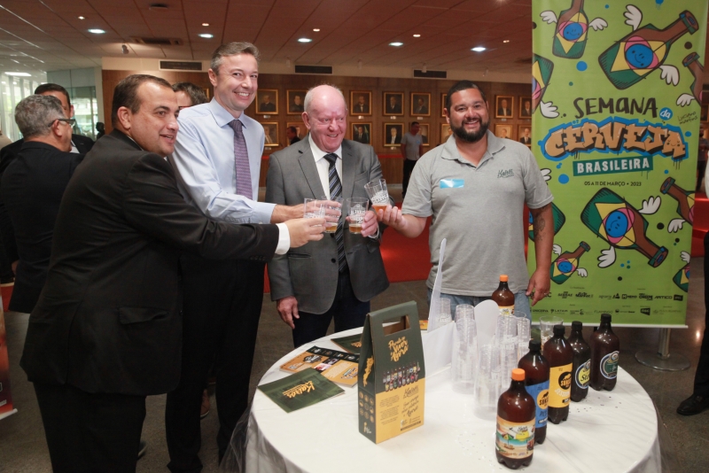 Na manhã desta terça-feira 28, aconteceu o lançamento da Semana da Cerveja Brasileira, na Assembleia Legislativa de SC (Alesc). O ato aconteceu no hall do Palácio Barriga Verde, em Florianópolis, e reuniu parlamentares, gestores públicos ligados ao turismo e representantes de empresas produtoras da bebida.